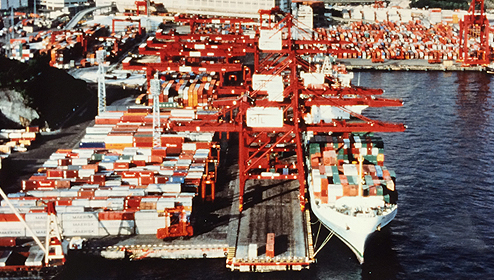 Modern Terminals owns and operates seven container berths and three barge berths in Hong Kong at Terminals 1, 2, 5 and 9 (South). Terminals 1, 2 and 5 are located in Kwai Chung, whereas Terminal 9 is located across the harbour on Tsing Yi Island. Between them, our terminals cover a total area of 92.61 hectares and have an annual capacity of 7 million TEUs.